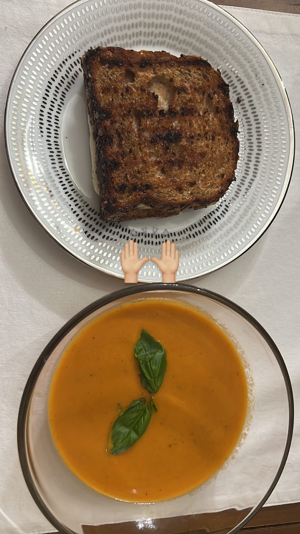 It’s simple, wholesome, and way better than anything from a can — especially when you pair it with a melty mozzarella grilled cheese on toasted sourdough. This is comfort food done right.